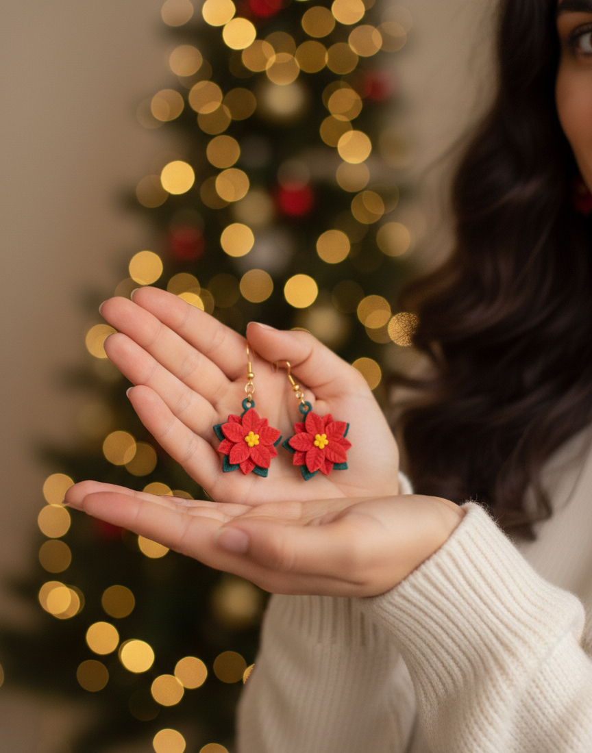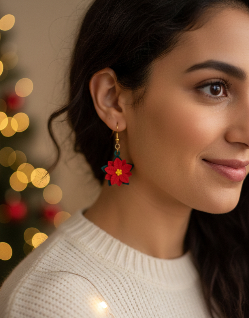 Inspirées par la fleur emblématique des fêtes, ces boucles d'oreilles Poinsettia sont de véritables micro-sculptures à porter. Elles capturent l'élégance botanique avec une précision artisanale, transformant un symbole de fête en un accessoire de mode intemporel.
